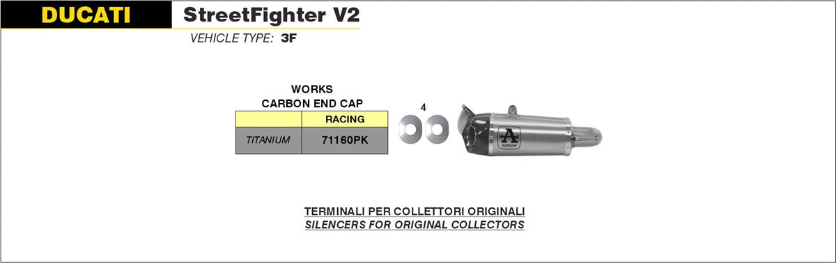 Available with a titanium canister, Works silencer can also be fitted to Arrow header pipes. Their cone-shaped design ensure good performances keeping noise under control.